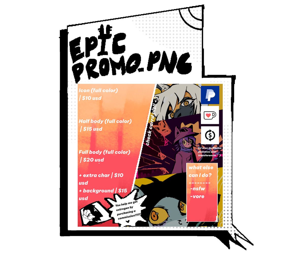 By commissioning me, you acknowledge that you have read and agreed to theseTerms of ServiceFull Payment Upfront: All commissions must be paid in full before any work begins.Payment Method: Payments are accepted exclusively through PayPal.Turnaround Time: The estimated completion time is between 1 to 2 weeks, depending on complexity and queue.Refund Policy: Refunds are not available once work has started, unless I am unable to complete the commission due to hardware failure.Work Updates: You can expect progress updates on your commission.Private Commissions: If you wish for your commission to remain private and not be shared publicly (including on social media or portfolios), an additional fee will be required.AI Usage Prohibited: My artwork may not be used for AI-related purposes under any circumstances. This includes, but is not limited to, training datasets, machine learning models, or any form of image processing such as upscaling, editing, or modification through AI tools.